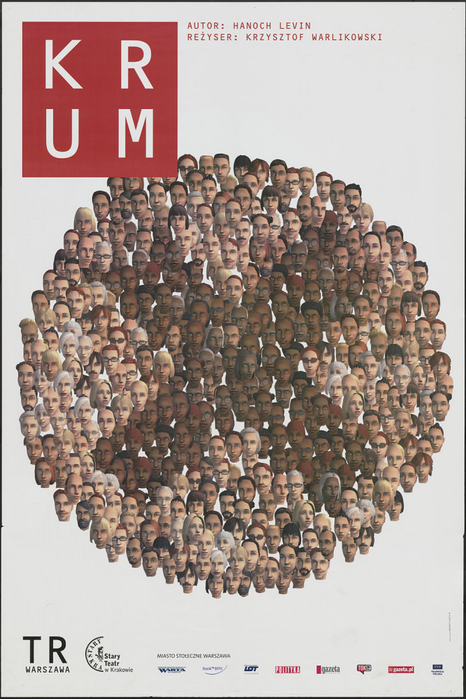Plakat do spektaklu "Krum" Obiekt Plakat do spektaklu "Krum" TAGI: spektakl sztuka melancholia sentymentalizm matka syn nieudacznik nieudany brzydota chorobia smierc hipochondria slub pogrzeb Udostępnij Kategoria: plakaty projekt graficzny: Grzegorz Laszuk Wymiary obiektu: 1220 x 1830 mm Ilość stron: 1 Data: 1 marca 2005 Język: polski Właściciel dokumentacji: TR Warszawa Licencja: CC-BY-NC-ND 3.0 Warunki udostępniania: Sublicencja na druk wymaga zgody autora Stan zachowania: stan bardzo dobry Istnienie oryginałów: Archiwum Artystyczne TR Warszawa materiał/technika oryginału: papier nośnik oryginalny: druk na papierze Spektakle 0001 Krum Krum reżyser: Krzysztof Warlikowski autor: Hanoch Levin 2005 Spektakl Osoby 0001 Grzegorz Laszuk Grzegorz Laszuk grafik Osoba