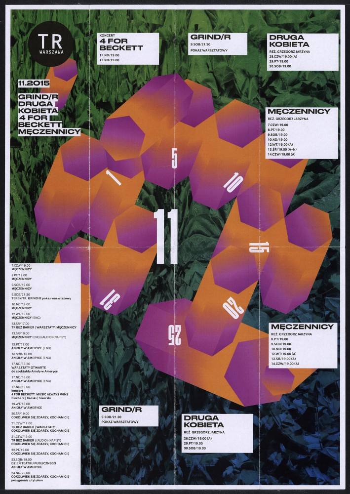 Projekt repertuaru Teatru Rozmaitości z sezonu 2015/16 - listopad Obiekt Projekt repertuaru Teatru Rozmaitości z sezonu 2015/16 - listopad Udostępnij Kategoria: repertuar grafik: Grzegorz Laszuk Ilość stron: 1 Data: 1 listopadaa 2026 Język: polski Właściciel dokumentacji: TR Warszawa Licencja: CC 2.0 Warunki udostępniania: Warunki typowe Osoby 0001 Grzegorz Laszuk Grzegorz Laszuk grafik Osoba