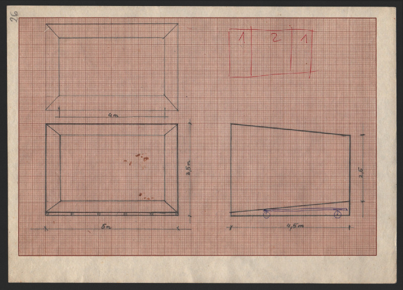Projekt scenografii do spektaklu "Do Damaszku". Rysowany ręcznie na papierze milimetrowym.