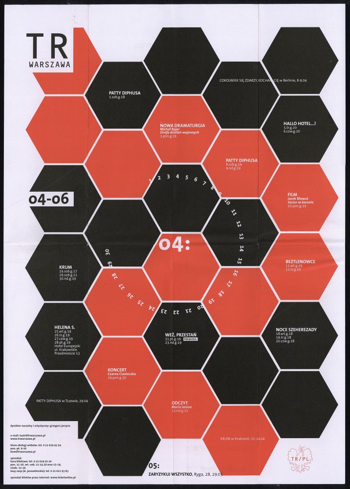 Repertuar Teatru Rozmaitości z sezonu 2005/06 - kwiecień Obiekt Repertuar Teatru Rozmaitości z sezonu 2005/06 - kwiecień Udostępnij Kategoria: repertuar grafik: Grzegorz Laszuk Ilość stron: 2 Data: 1 kwietnia 2006 Język: polski Właściciel dokumentacji: TR Warszawa Licencja: CC 2.0 Warunki udostępniania: Warunki typowe Osoby 0001 Grzegorz Laszuk Grzegorz Laszuk grafik Osoba