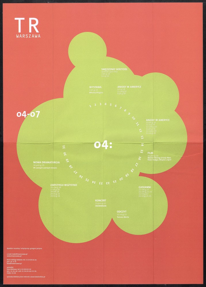 Repertuar Teatru Rozmaitości z sezonu 2006/07 - kwiecień Obiekt Repertuar Teatru Rozmaitości z sezonu 2006/07 - kwiecień Udostępnij Kategoria: repertuar grafik: Grzegorz Laszuk Ilość stron: 2 Data: 1 kwietnia 2007 Język: polski Właściciel dokumentacji: TR Warszawa Licencja: CC 2.0 Warunki udostępniania: Warunki typowe Osoby 0001 Grzegorz Laszuk Grzegorz Laszuk grafik Osoba