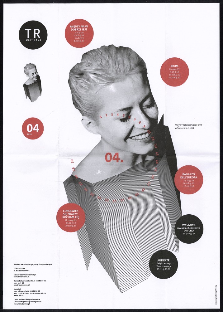 Repertuar Teatru Rozmaitości z sezonu 2010/11 - kwiecień Obiekt Repertuar Teatru Rozmaitości z sezonu 2010/11 - kwiecień Udostępnij Kategoria: repertuar grafik: Grzegorz Laszuk Ilość stron: 2 Data: 1 kwietnia 2011 Język: polski Właściciel dokumentacji: TR Warszawa Licencja: CC 2.0 Warunki udostępniania: Warunki typowe Osoby 0001 Grzegorz Laszuk Grzegorz Laszuk grafik Osoba