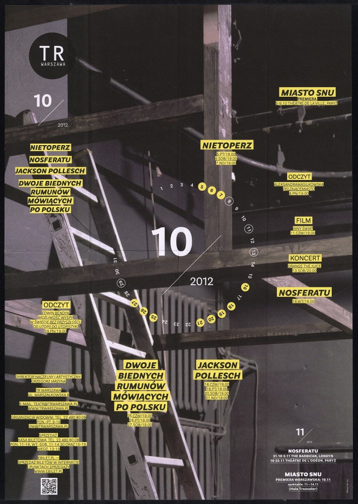 Repertuar Teatru Rozmaitości z sezonu 2012/13 - październik Obiekt Repertuar Teatru Rozmaitości z sezonu 2012/13 - październik Udostępnij Kategoria: repertuar grafik: Grzegorz Laszuk Ilość stron: 2 Data: 1 październikaa 2012 Język: polski Właściciel dokumentacji: TR Warszawa Licencja: CC 2.0 Warunki udostępniania: Warunki typowe Osoby 0001 Grzegorz Laszuk Grzegorz Laszuk grafik Osoba