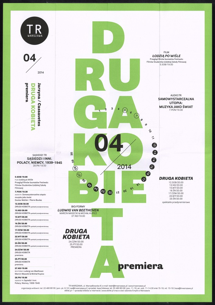 Repertuar Teatru Rozmaitości z sezonu 2013/14 - kwiecień Obiekt Repertuar Teatru Rozmaitości z sezonu 2013/14 - kwiecień Udostępnij Kategoria: repertuar grafik: Grzegorz Laszuk Ilość stron: 2 Data: 1 kwietnia 2014 Język: polski Właściciel dokumentacji: TR Warszawa Licencja: CC 2.0 Warunki udostępniania: Warunki typowe Osoby 0001 Grzegorz Laszuk Grzegorz Laszuk grafik Osoba
