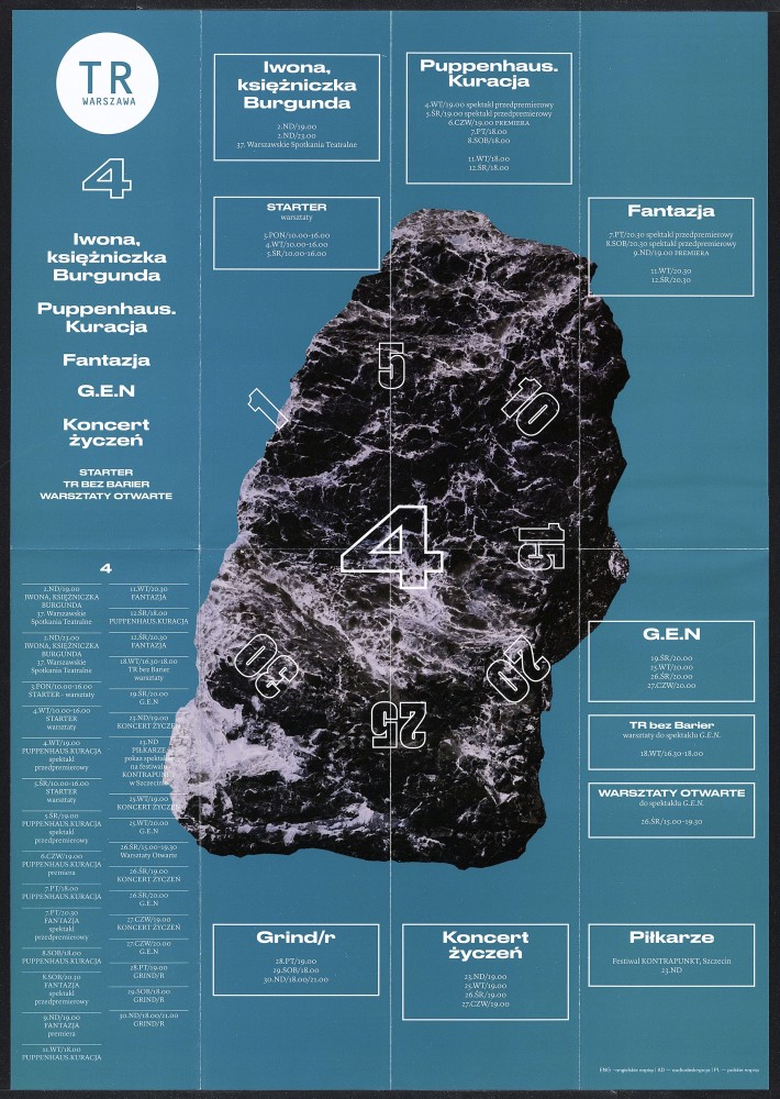 Repertuar Teatru Rozmaitości z sezonu 2016/17 - kwiecień Obiekt Repertuar Teatru Rozmaitości z sezonu 2016/17 - kwiecień Udostępnij Kategoria: repertuar grafik: Grzegorz Laszuk Ilość stron: 2 Data: 1 kwietnia 2017 Język: polski Właściciel dokumentacji: TR Warszawa Licencja: CC 2.0 Warunki udostępniania: Warunki typowe Osoby 0001 Grzegorz Laszuk Grzegorz Laszuk grafik Osoba